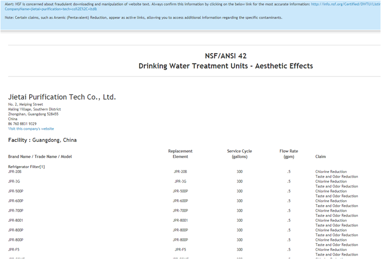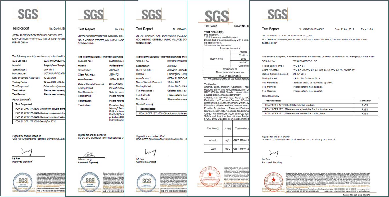 NSF42標準——感官作用 本項標準通過浸泡測試,證明炭棒材料安全,能去除余氯,泥沙鐵銹以及各種顆粒物 漂浮物等,去除異味,改善水的口感。 NSF53標準——健康作用 本項標準測試炭棒能去除多種危害健康的污染物的能力,如:三氯甲烷、鉛、殺蟲劑、 VOC等。 NSF401標準——新興化合物或突發(fā)性污染物 本項標準用于評價炭棒對水中15種新興化合物/突發(fā)性污染物的去除能力,這15種物質(zhì) 包括部分處方藥和非處方藥、部分新型殺蟲劑和除草劑、一些阻燃劑及塑化劑等化學(xué)物質(zhì) |