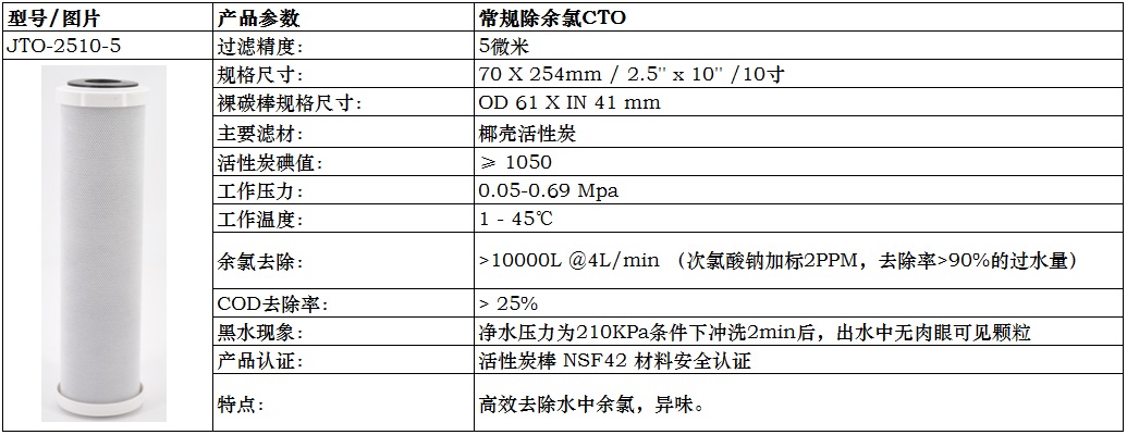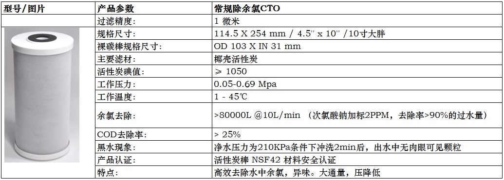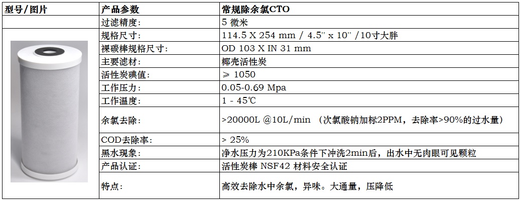常規(guī)10寸除余氯CTO濾芯,過(guò)濾精度1μm