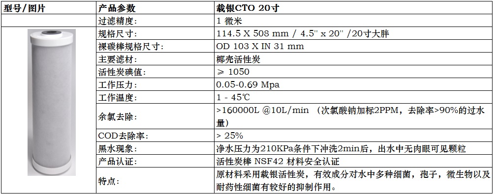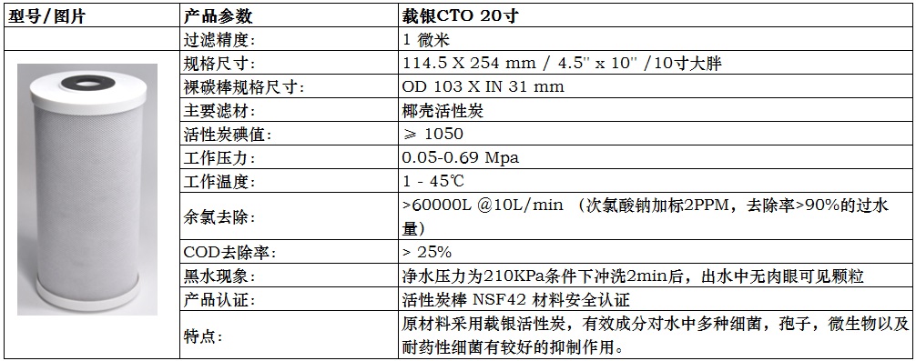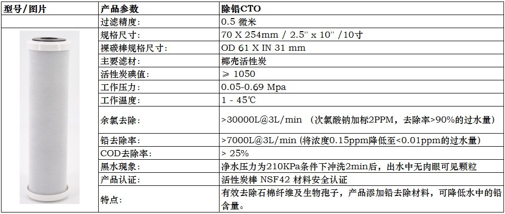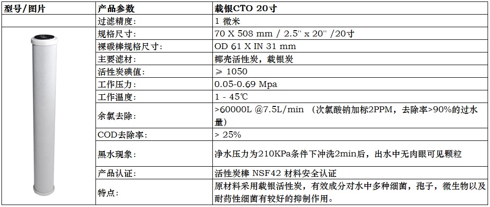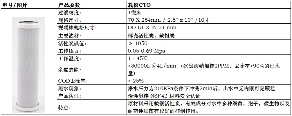 標(biāo)準(zhǔn)CTO炭棒濾芯